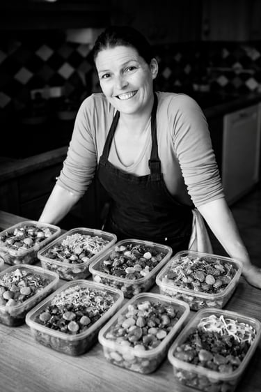 Mon objectif est de vous aider à manger sainement tout en gagnant du temps. Grâce à une cuisine faite maison, avec des produits frais et de saison, je vous accompagne pour rendre l’organisation des repas plus facile, plus agréable et accessible à tous.