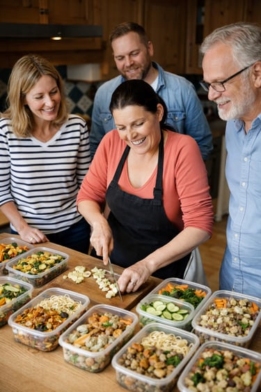 Atelier de batch cooking de 3 heures pour apprendre à organiser votre cuisine, optimiser votre temps et préparer plusieurs repas maison en une seule session. Ensemble, nous verrons les bases et les techniques essentielles du batch cooking, la planification des repas selon vos goûts, et la réalisation de plats savoureux et équilibrés.